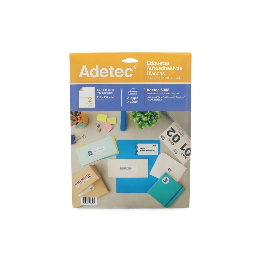 Descripción técnica | Etiquetas adhesivas formato carta con 2 etiquetas por hoja, 100 hojas por display. |