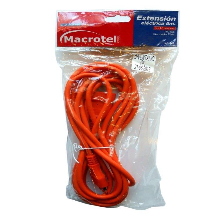 Descubre el Alargador Eléctrico Simple MacroTel en vibrante color Naranjo. Con una longitud de 5 metros, este alargador es ideal para ofrecer la máxima conectividad y flexibilidad en cualquier espacio.