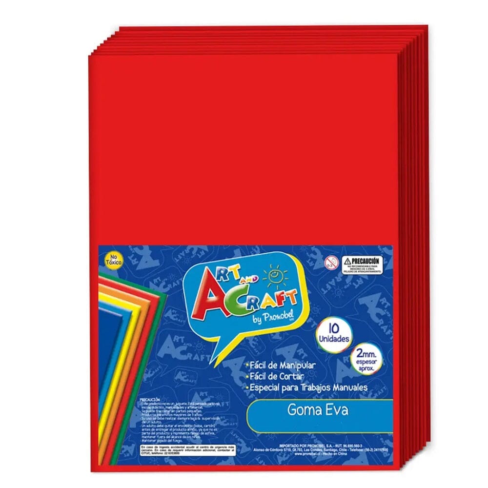 La goma eva roja Art & Craft es perfecta para manualidades, proyectos escolares y decoraciones. Su material flexible y resistente facilita la creación de figuras, adornos y todo tipo de diseños.