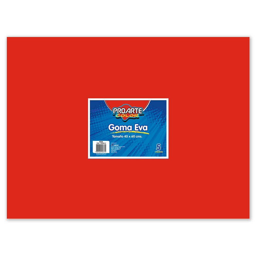 Para tus deberes escolares o simplemente una manualidad que estes haciendo, utiliza la goma eva rojo de la marca Proarte, tu proyecto quedara más llamativo. Tiene una medida de 45 x 60 cm y vienen 5 hojas.