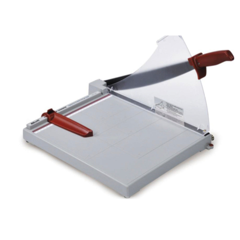 • Escudo de seguridad mantiene firmemente el papel para un corte preciso