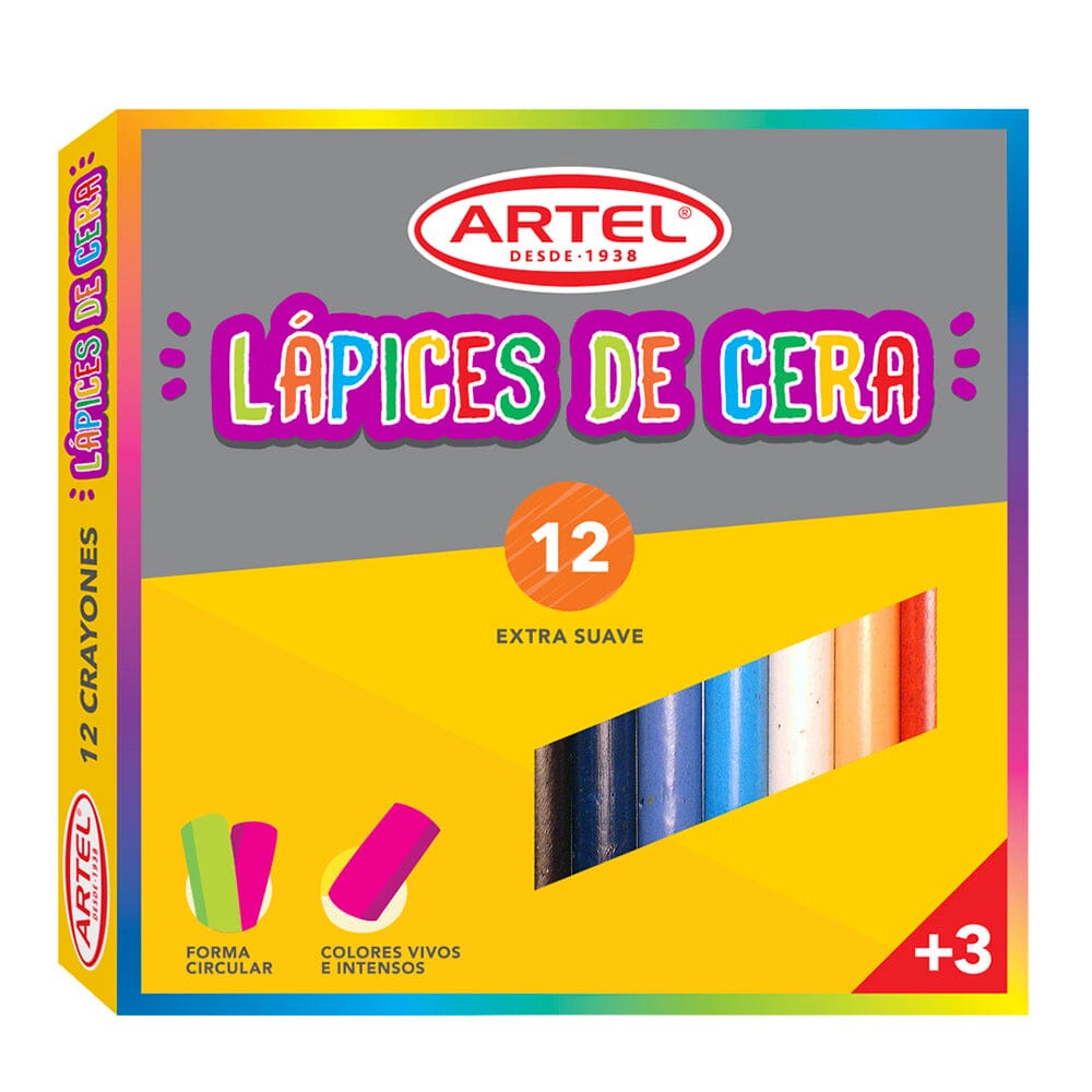 Artel tiene para ti los lápices de cera con 12 colores para que disfrutes coloreando tus dibujos. Son libres de toxicidad y con ellos puedes realizar maravillosos efectos a tus ilustraciones con su suave aplicación. ¡Exprésate con Artel!