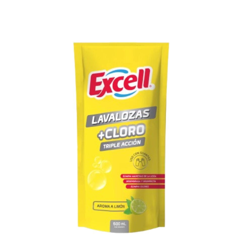 Con el Lavalozas con cloro Doypack 500 ml de Excell tendrás una limpieza impecable en tu hogar.