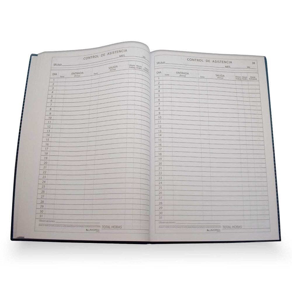 Lleva un control detallado y preciso con el Libro Registro de Asistencia de Lavoro. Ideal para instituciones, empresas y organizaciones que requieren un seguimiento formal de asistencia.
