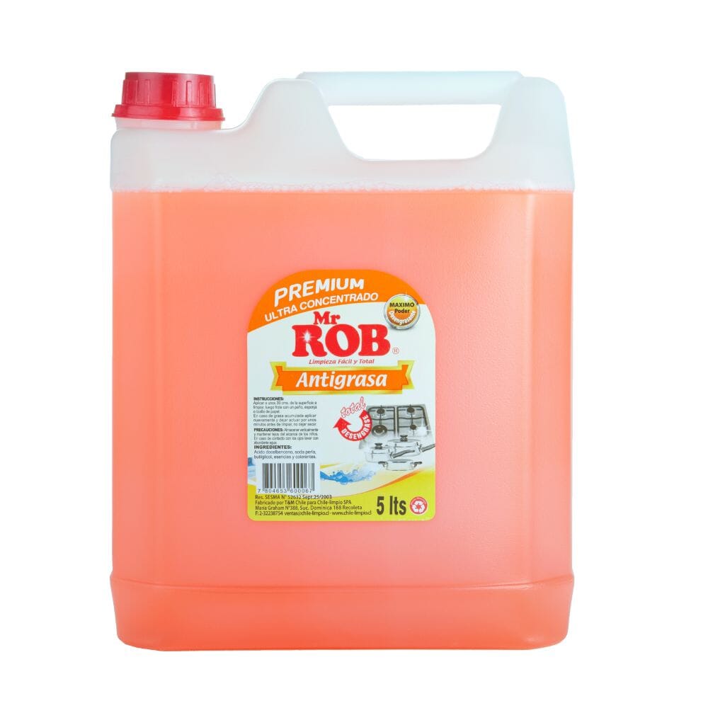 El limpiador antigrasa 5 lt de Mr. Rob, es alcalino con ingredientes activos óptimos que garantizan máxima penetración en la suciedad más severa
