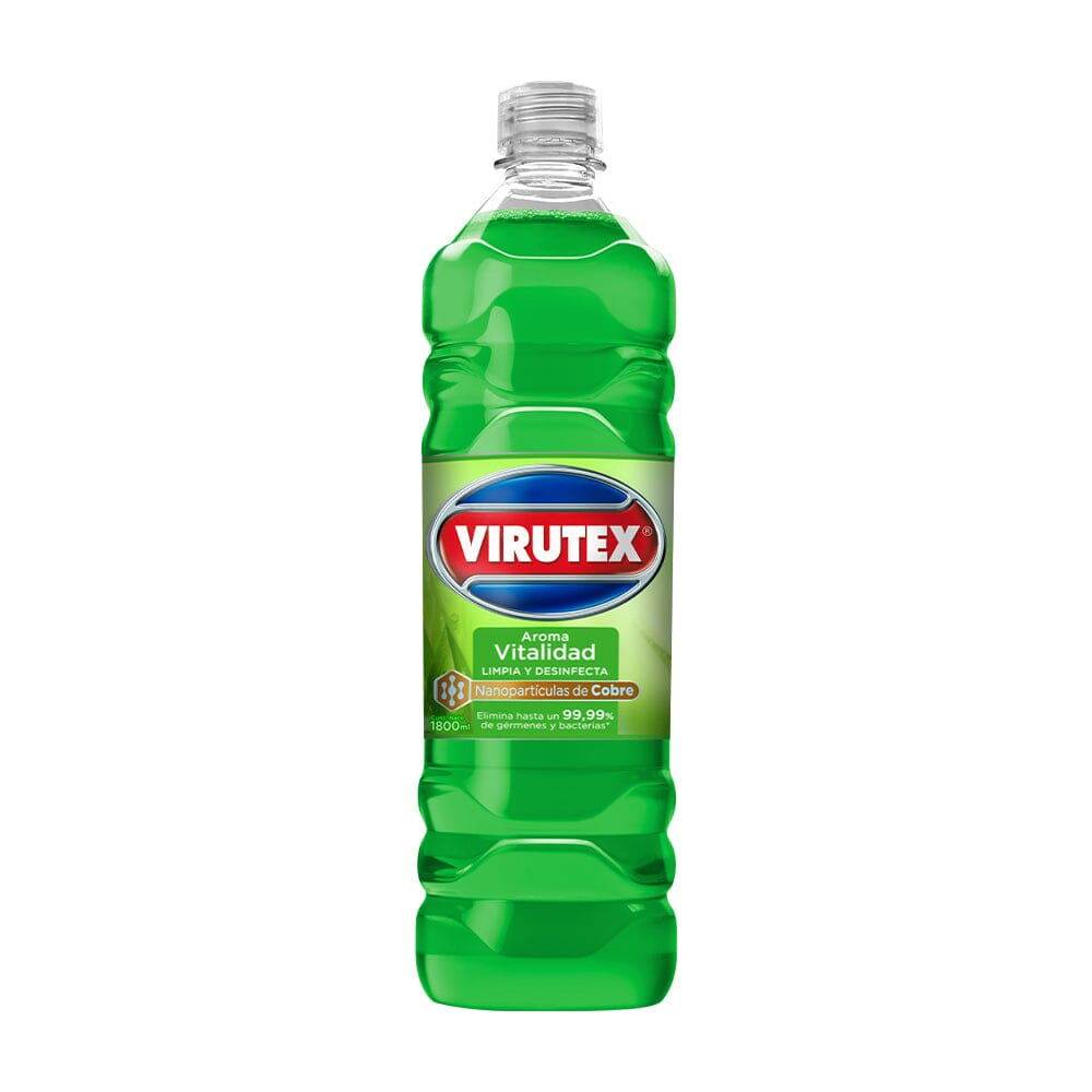 Gracias al limpiador desinfectante vitalidad 1800 ml de Virutex, tendrás todo limpio y desinfectado. Ideal para superficies lavables como pisos, azulejos, inodoros, baños y cocinas.