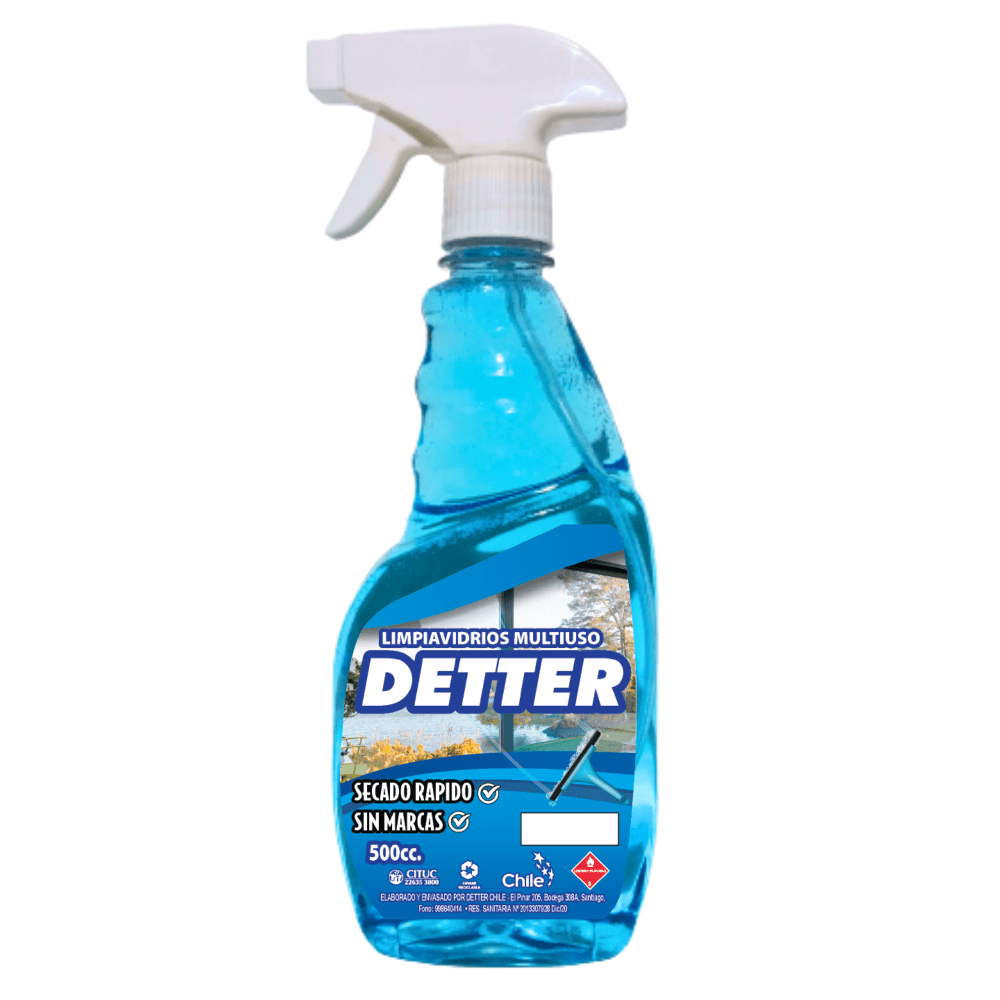 Limpiavidrios Detter tiene una fórmula líquida que deja los vidrios impecables sin mayor esfuerzo. Su dispensador de gatillo permite una fácil aplicación. Además, su formato de 500 cc. permite llevarlo dentro del auto. Es la solución para la mala visibilidad que dejan los residuos de lluvias y suciedad en ventanas y superficies similares.