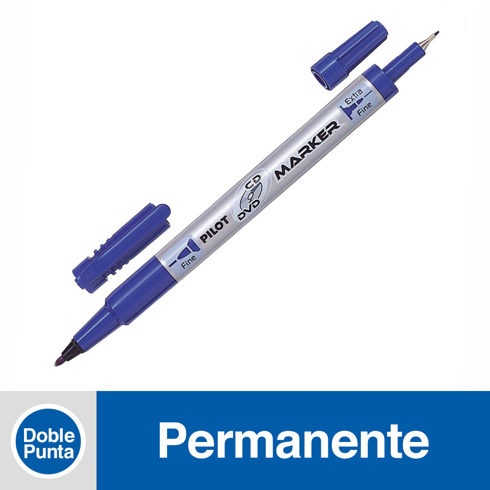 Identifica tus discos con precisión y durabilidad usando el marcador permanente doble Pilot. Especialmente diseñado para escribir sobre superficies de CD y DVD sin dañarlas, cuenta con una punta de 0.7 mm que ofrece trazos finos y definidos.