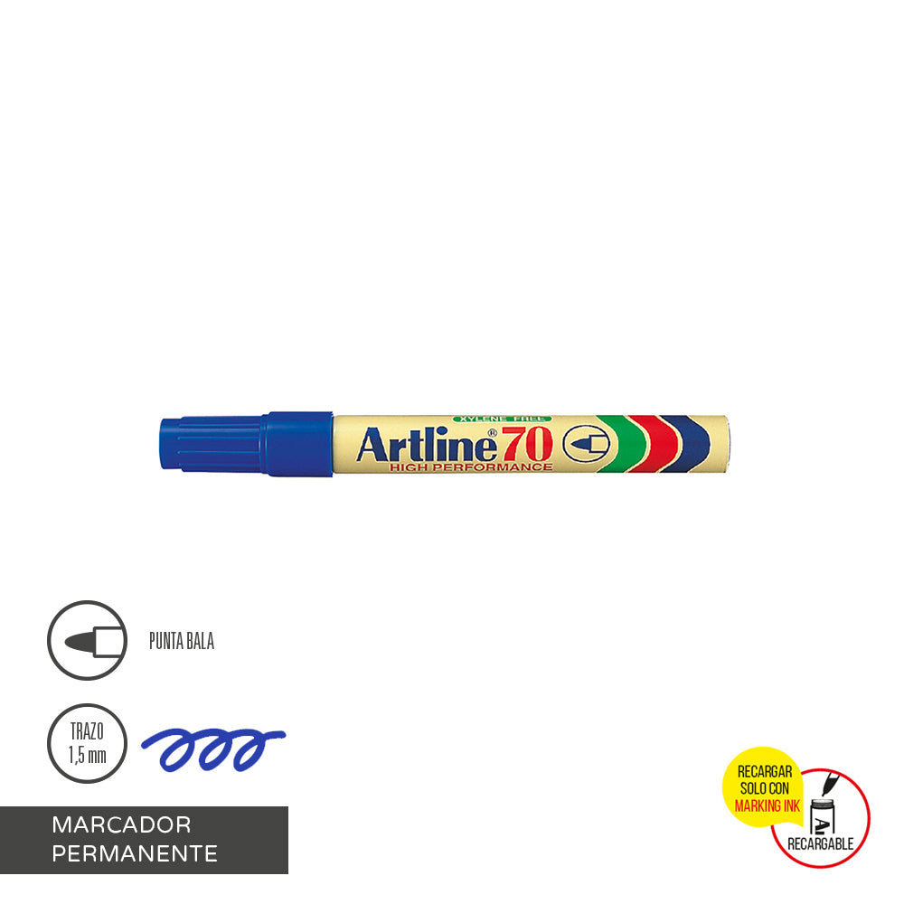 El marcador permanente recargable Artline 70 en color azul es la solución perfecta para quienes buscan calidad.