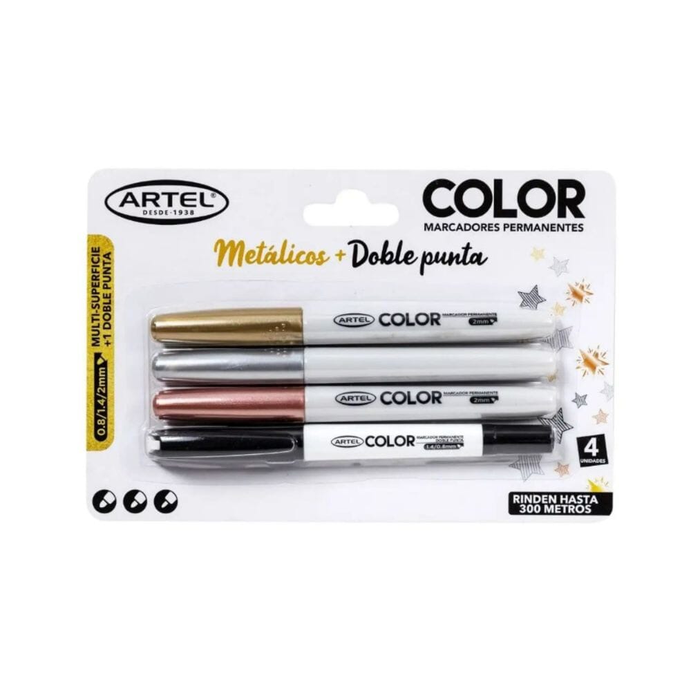 El Marcador Permanente Doble Punta Artel incluye 3 unidades en colores vibrantes, perfectos para trabajos en superficies variadas.