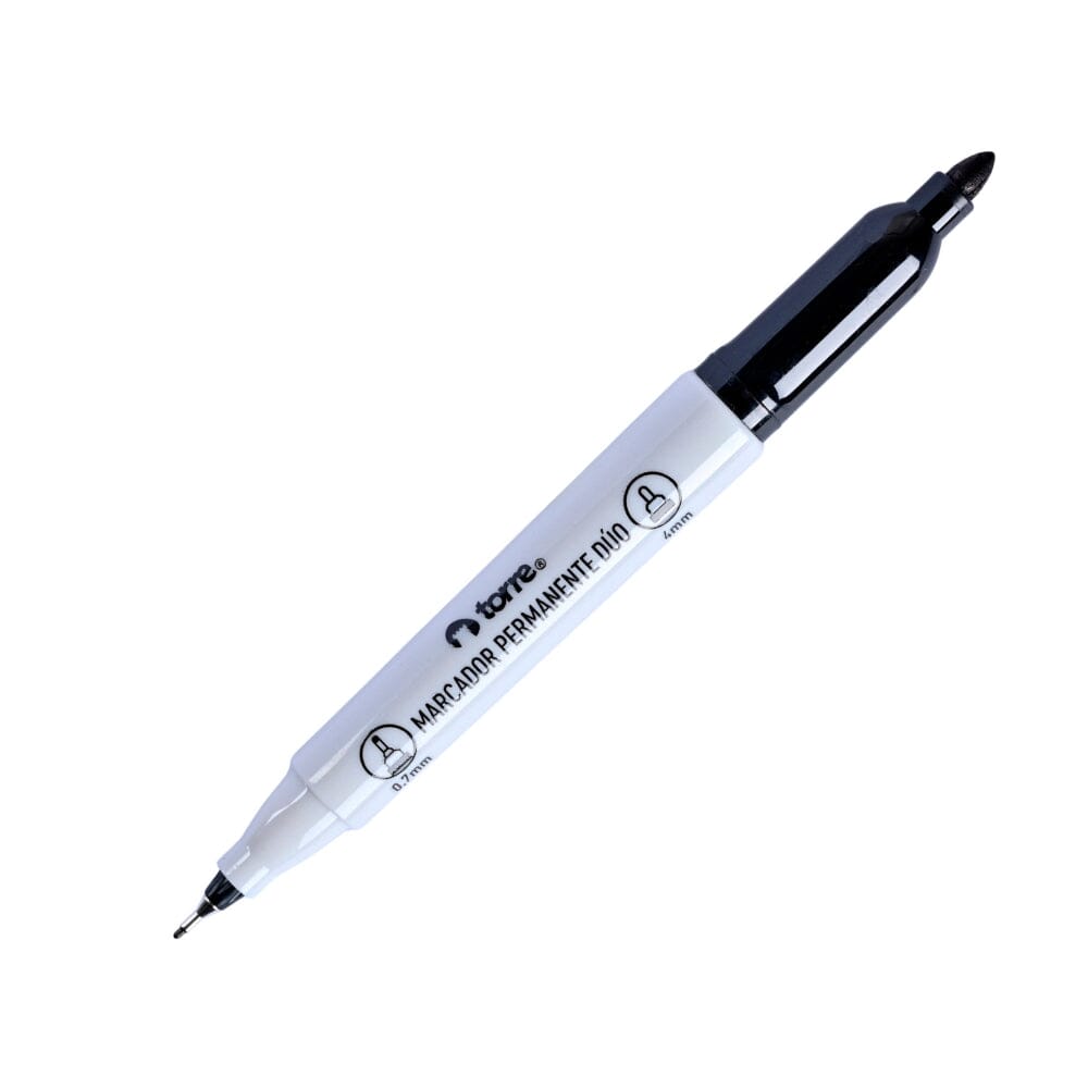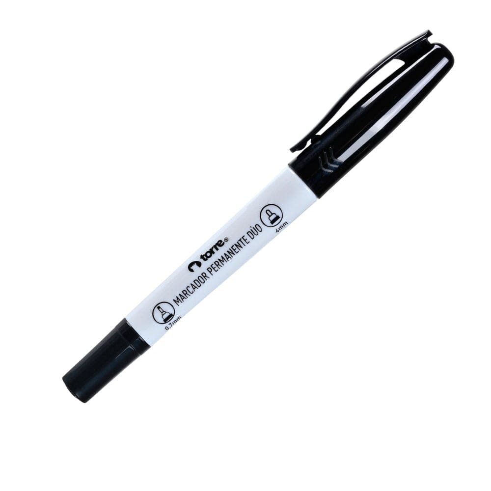 Versátil y funcional, el Marcador Permanente Dúo Torre ofrece dos puntas en un solo cuerpo: fina para detalles y redonda para trazos firmes. Ideal para marcar en múltiples superficies con tinta negra resistente y de secado rápido. Perfecto para oficina, estudio o proyectos creativos.