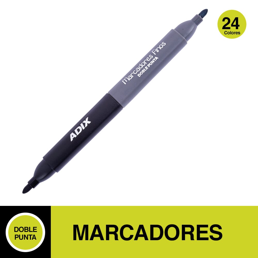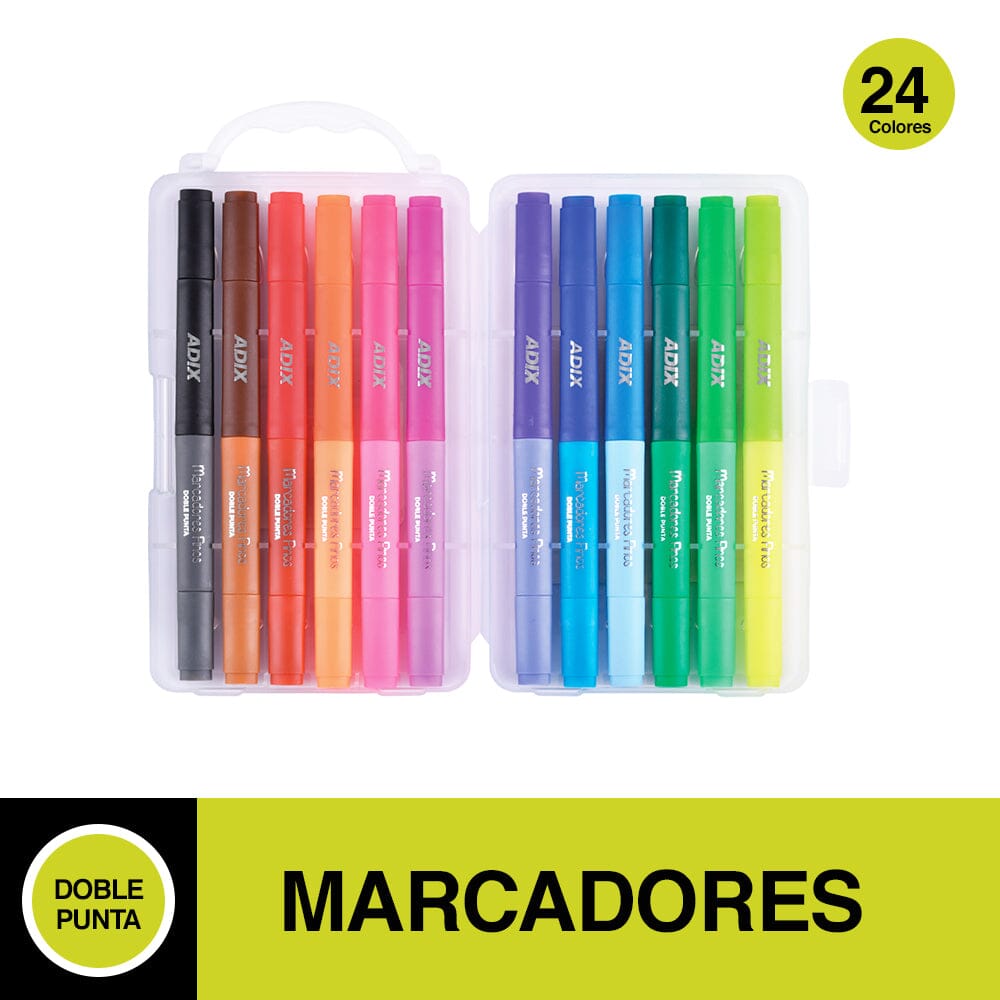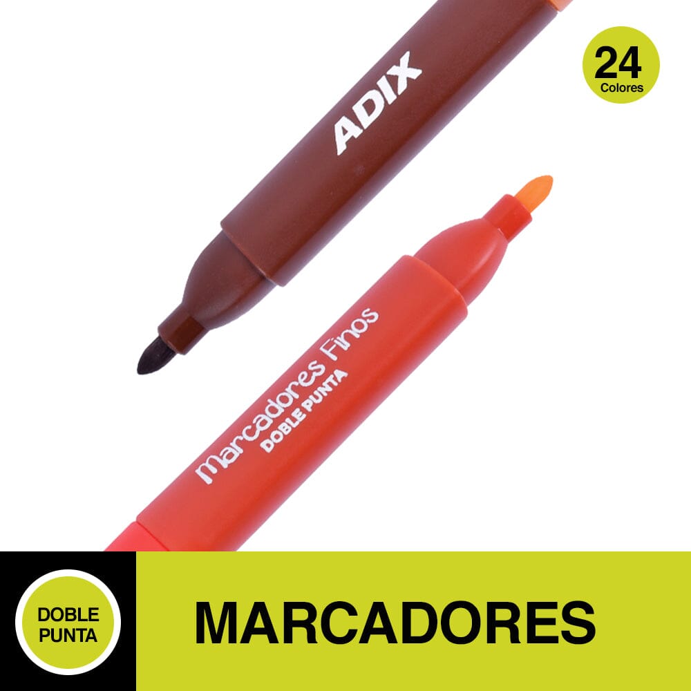 Estos marcadores permanentes fino doble punta son una excelente opción, vienen en 24 unidades. Sirven para variadas superficies, papeles, cartones, etc.
