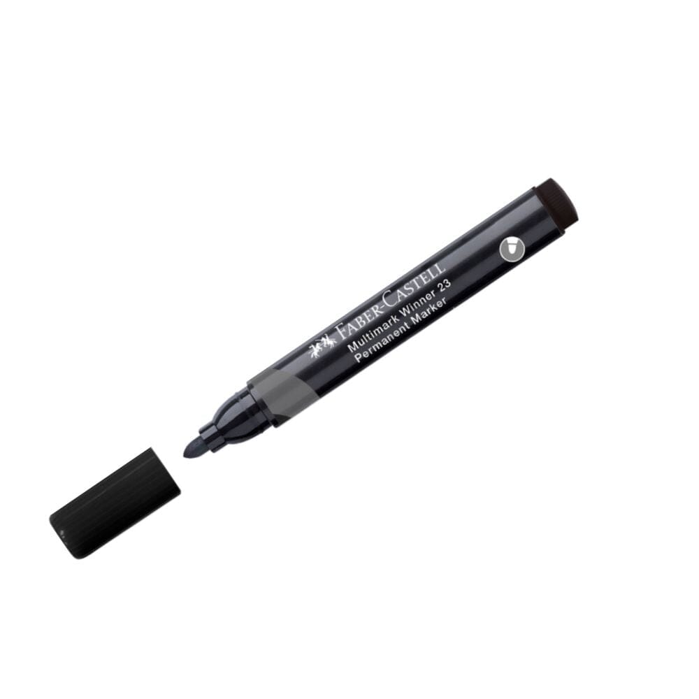 El marcador permanente Winner 23 de Faber-Castell ofrece un negro intenso y una tinta de secado rápido, ideal para marcar sobre múltiples superficies como papel, cartón, plástico, vidrio y metal. Su punta resistente permite un uso prolongado sin deformarse.