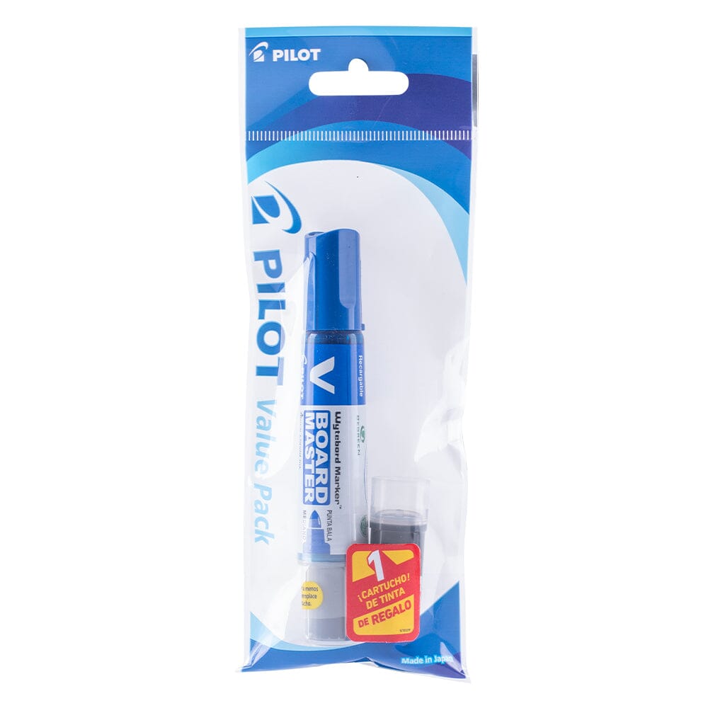 El Pilot V Board Master azul es un marcador de tinta líquida ideal para pizarras blancas, con tecnología Pure Liquid Ink que garantiza un trazo constante y visible hasta el final. Su color azul intenso resalta en cualquier presentación y su sistema recargable lo convierte en una opción ecológica y económica.