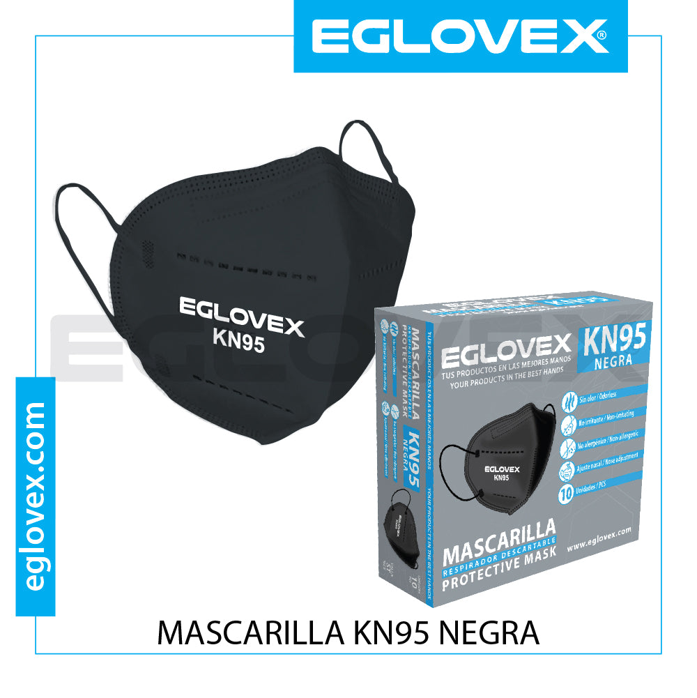 La mascarilla negra kn95 10 un de la marca Eglovex filtra los principales microorganismos en el ambiente, con un 95 % de efectividad.
