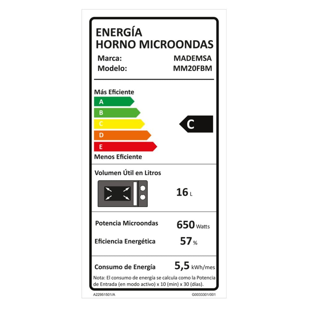 Con su diseño elegante y compacto, se adapta perfectamente a cualquier espacio de tu cocina. Su capacidad de 20 litros es ideal para hogares pequeños o para aquellos que buscan un microondas funcional y práctico.