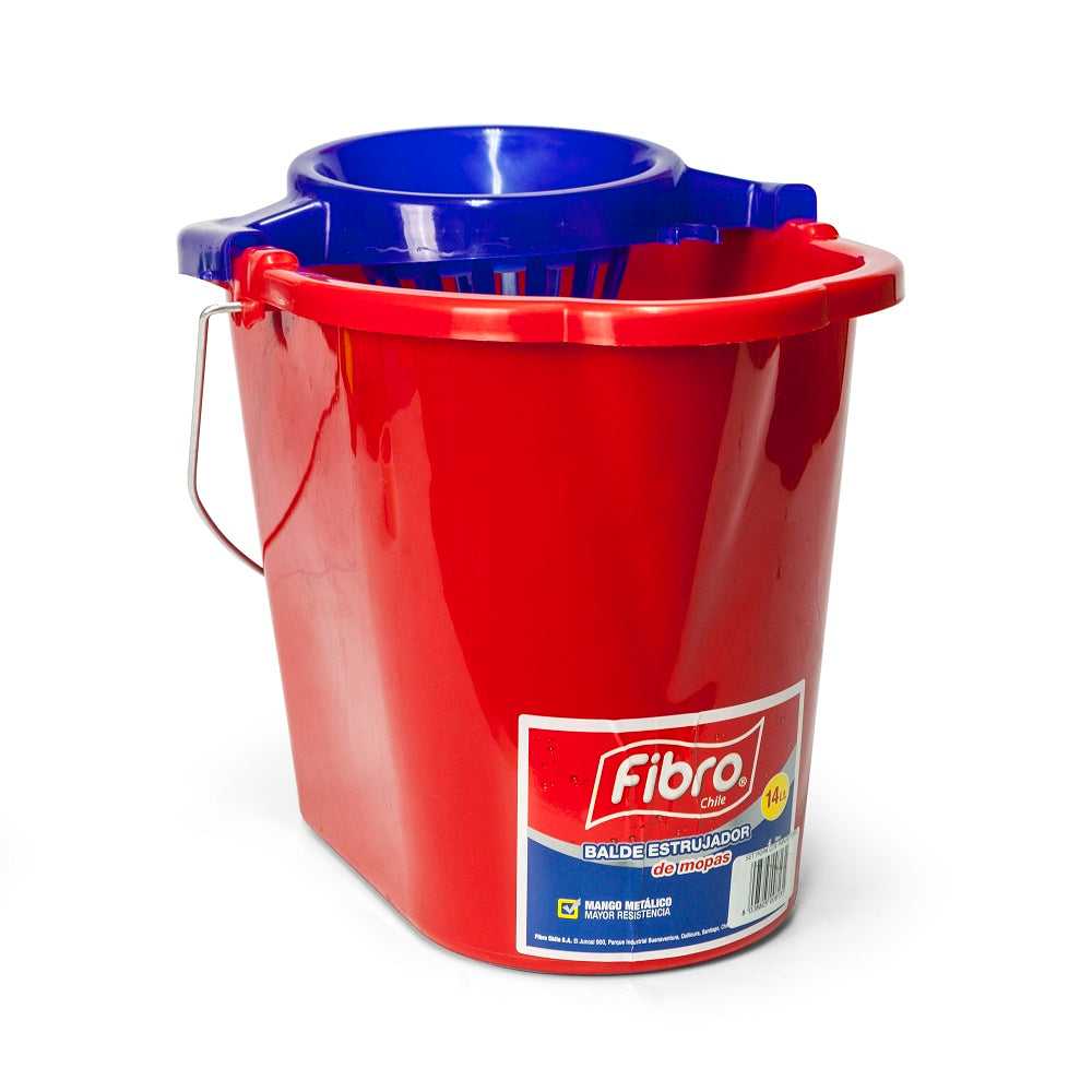 Balde con escurridor de plástico ultra resistente. Mango de metal con soporte plástico para un mejor agarre y comodidad al tomarlo.