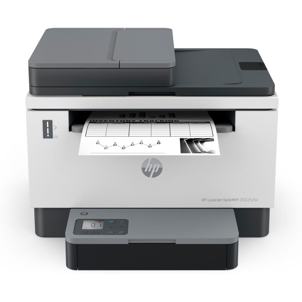 Descubra capacidades empresariales y la posibilidad de ahorrar con la impresora Todo-en-Uno HP LaserJet Tank MFP 2602sdw precargada con tóner original HP para hasta 5000 páginas