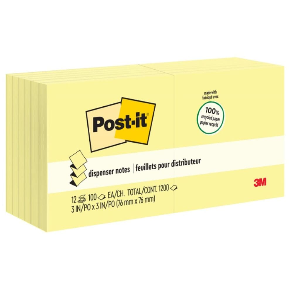 Las notas Pop up recicladas de 3M. color amarillo son ideales para que puedas escribir tus mensajes de manera llamativa y con compromiso ambiental. ¡Para dispensador de notas Pop up!