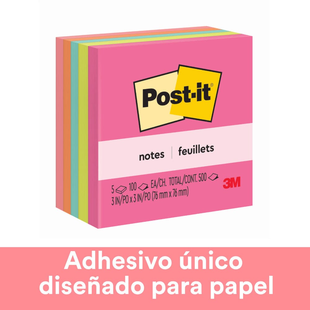 Nota Adhesiva 5 Un X 100 Hojas 7.6 X 7.6 Cm Surtido Neón 654 5 Pk