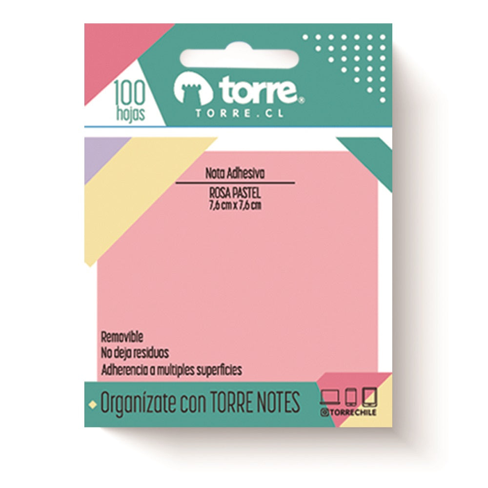La nota adhesiva de color rosa pastel de la marca torre son ideales para dejar notas en diversos lugares, además no deja residuos.