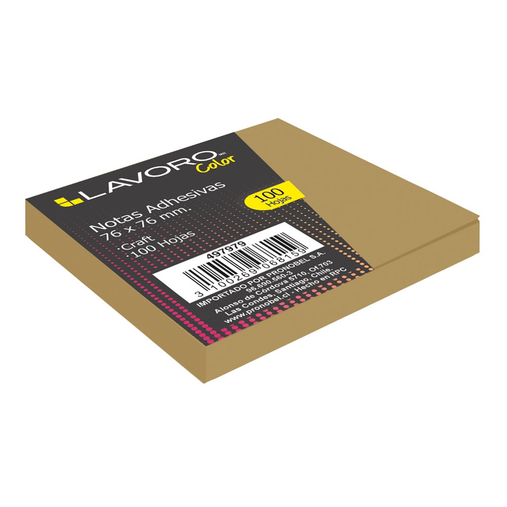 Quieres darle un toque original a tu escritorio, prueba con las notas adhesivas 654 kraft de la marca Lavoro, elaboradas de papel Kraft le dará un toque creativo a tus ideas y organización. Vienen en medida de 76 x 76 cm y cuenta con 100 hojas.