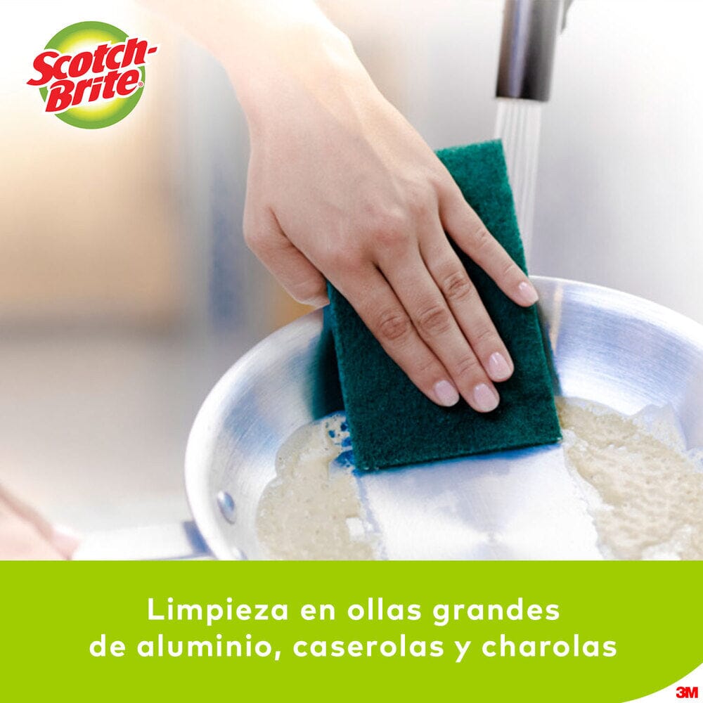 ScotchBrite trae al mercado un conveniente pack de esponja abrasiva de tamaño grande que permite abarcar de mejor manera la superficie a limpiar. Su efecto dura mucho más tiempo y no se desarma con el uso.