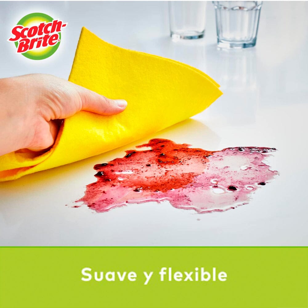 Aprovecha la multifuncionalidad del Paño Multiuso Scotch-Brite® para limpiar y secar todo tipo de superficies además de dejarlas sin pelusas. Es resistente a todo tipo de químicos de limpieza y cloro diluído, aunque no absorbe olores y se puede lavar en lavadora. Con él tendrás la capacidad de manipular objetos calientes, limpiar baños, quitar polvo, secar y sacar brillo.