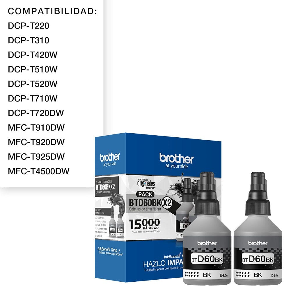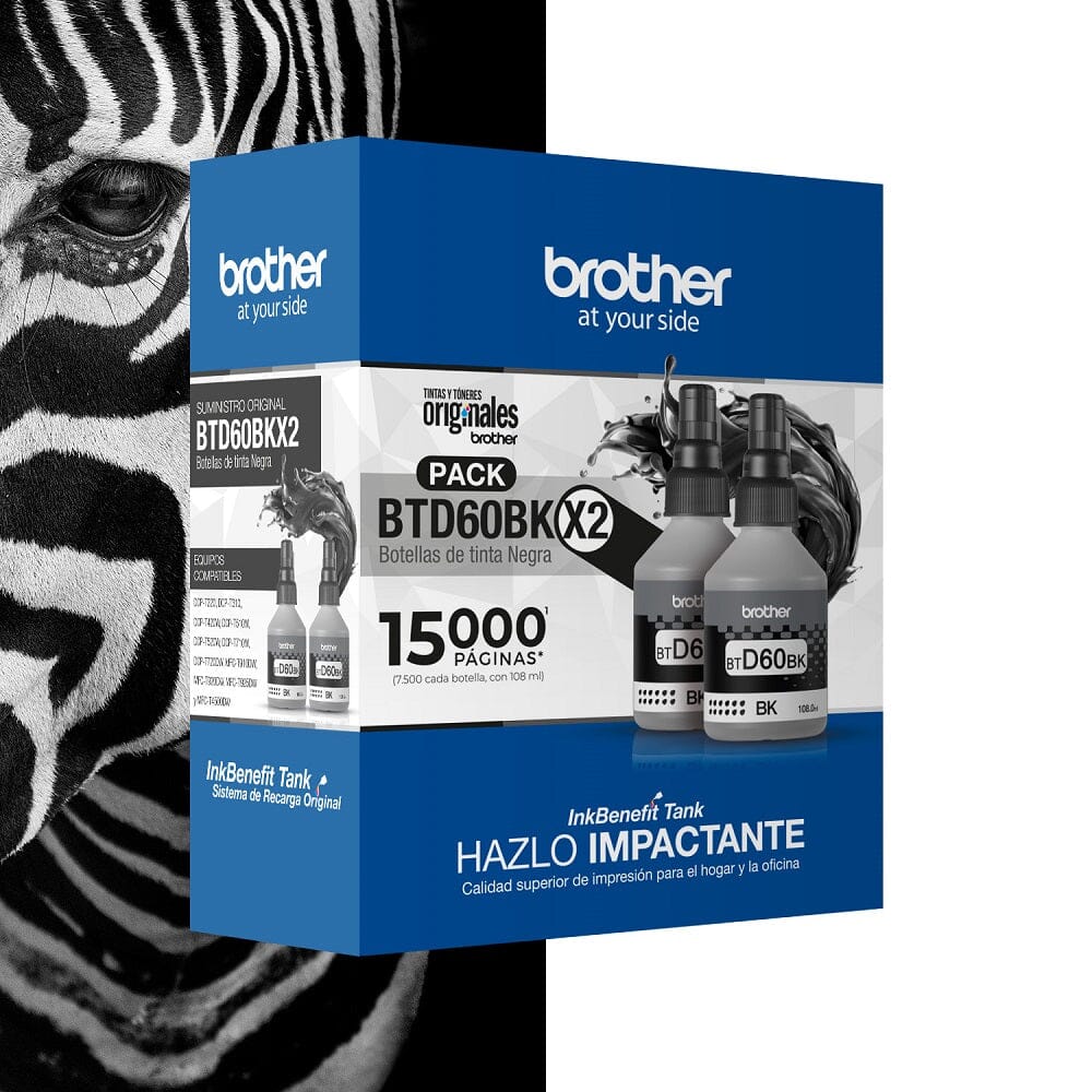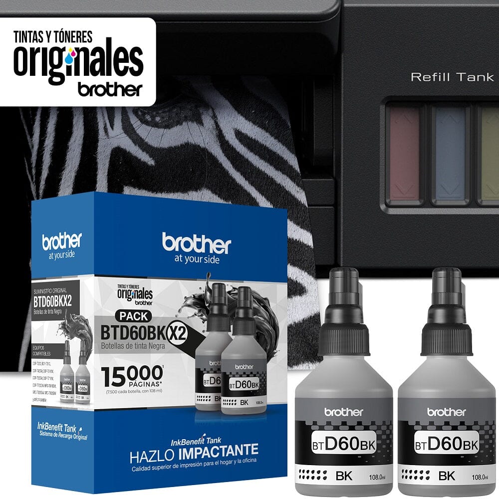 Cuando Necesites cambiar la tinta de tu impresora Brother cuanta con el pack 2 botellas negras btd60bk, con ellas podrás imprimir hasta 7500 páginas por botella.Este pack te entrega 2 botellas con las cuales podrás imprimir hasta 15000 páginas.