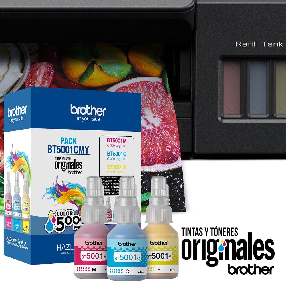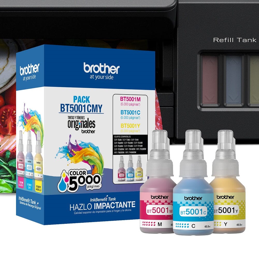 Para obtener la mejor calidad de impresión en tu impresora Brother cuanta con el pack tres colores bt5001 cmy.Este pack cuenta con cyan, magenta y amarillo, que te permitirán imprimir hasta 5000 páginas a todo color.