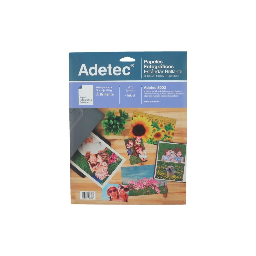 Con el papel fotográfico de Adetec podrás imprimir tus propias fotografías. Disfruta de sus 20 hojas carta con acabado brillante. ¡Ideales para obtener buenas imágenes!