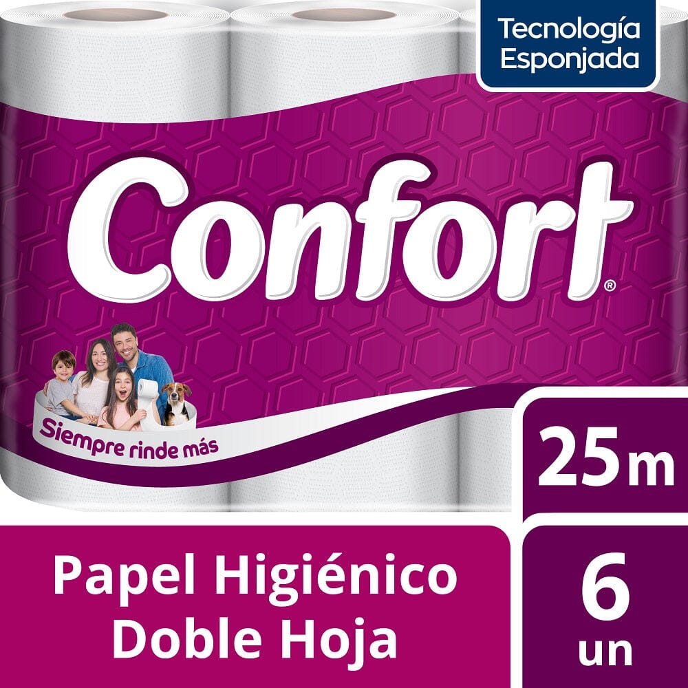 Disfruta cada momento con la suavidad y calidad del papel higiénico Confort. Con doble hoja y 6 rollos de 25 metros, brinda mayor duración, resistencia y una agradable sensación al contacto.