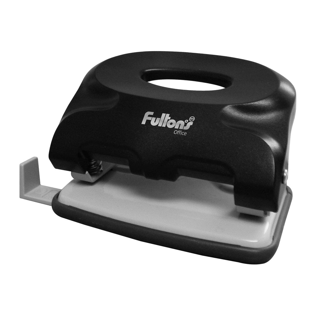 La perforadora Fultons negra de plástico, en su formato mediano, es ideal para perforar hasta 15 hojas. Su color y estilo la hacen ideal para tener en tu escritorio o espacio de trabajo.