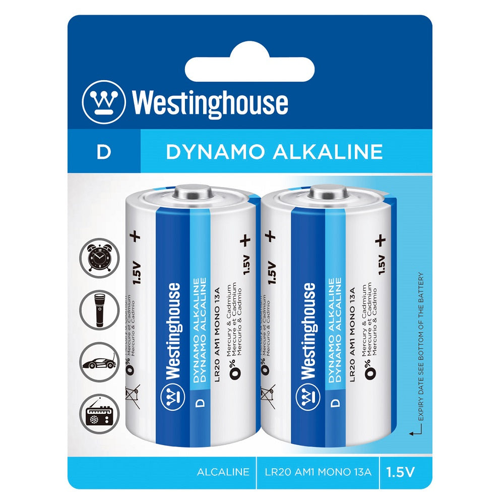 Las pilas Dínamo alcalina de Westinghouse fueron inspiradas por el Dínamo Westinghouse original y ofrecen la mayor capacidad de cualquier pila descartable. Con su larga duración y fecha de vencimiento de 5 años, la pila Dínamo alcalina de Westinghouse entrega una corriente estable ideal para dispositivos hogareños de alto consumo, incluidos relojes, controles remotos y juguetes. Westinghouse, una marca de confianza, brinda una amplia gama de pilas confiables, incluidas de súper alto desempeño, alcalinas, botón de litio, para audífonos y recargables.