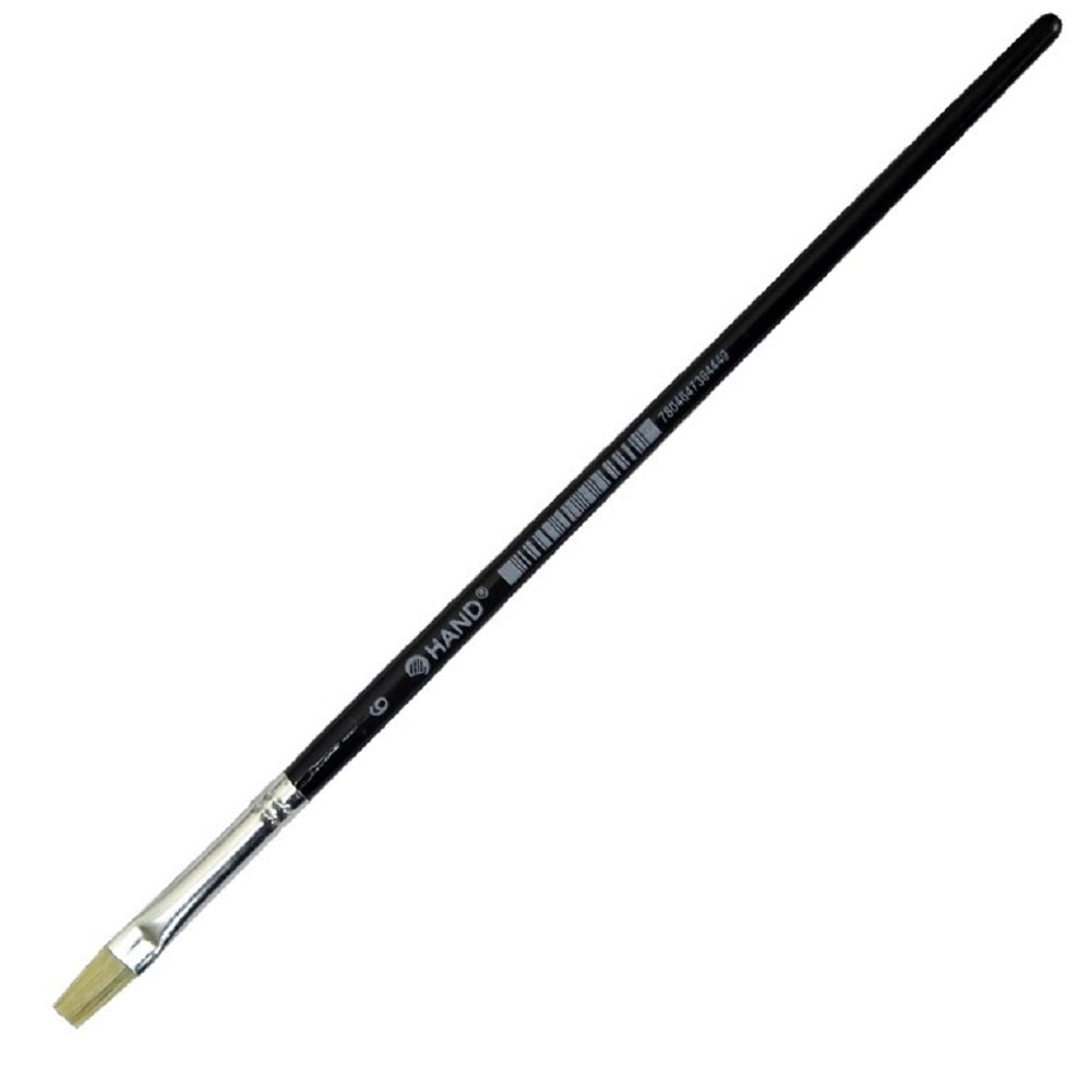 Para pintar en óleo la mejor alternativa es el pincel plano pelo cerda n6 de Hand, con esta herramienta quedaran tus cuadros con un toque profesional.Es de pelo natural, mango negro lacado, férula niquelada inoxidable y sin soldadura.