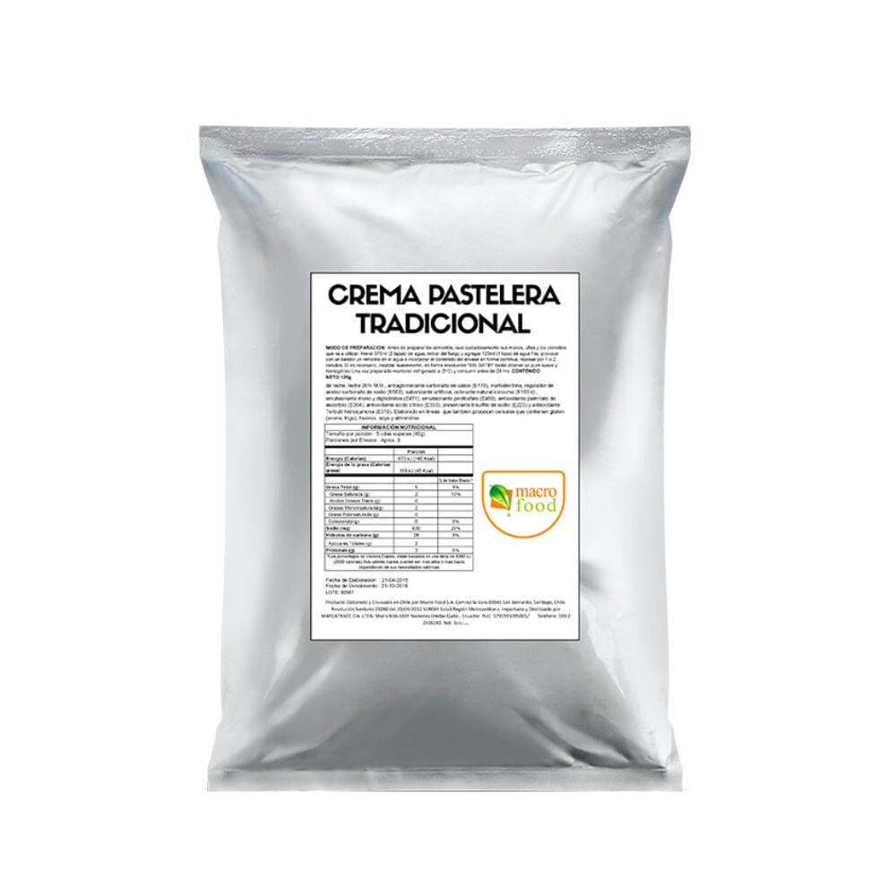 Prepara postres irresistibles con la Crema Pastelera en Polvo Macrofood en bolsa de 400 gramos.