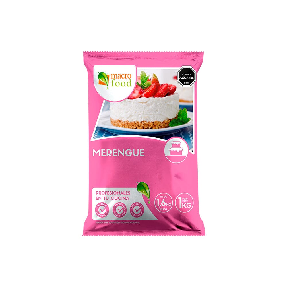 El merengue en polvo 1 Kg de Macrofood es una premezcla profesional diseñada para facilitar la preparación de merengues firmes y estables ideales para decoración.