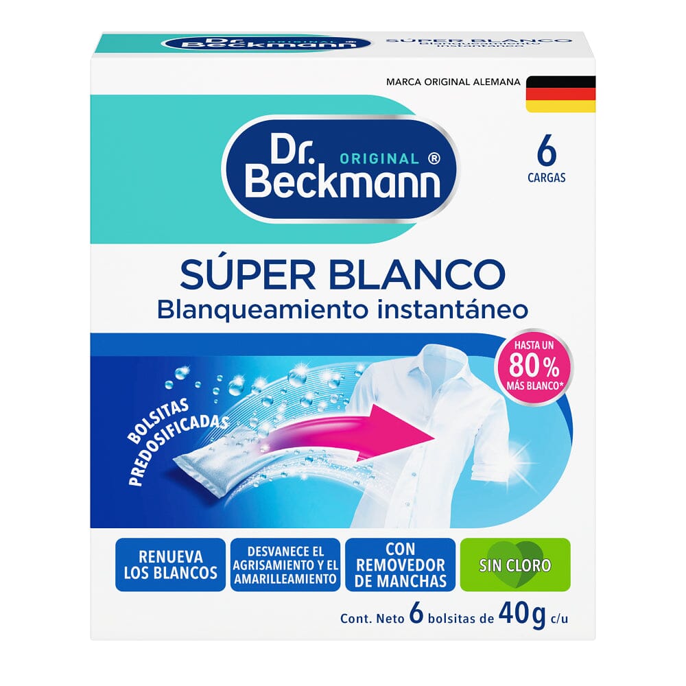 El Quitamanchas Doypack Súper Blanco 80 g de Dr. Beckmann es tu mejor aliado para restaurar el brillo y blancura de tus prendas. Su fórmula avanzada elimina manchas difíciles y amarillentas, devolviendo a la ropa su aspecto original. Ideal para camisas, blusas, toallas y más, cuida las fibras mientras ofrece resultados sorprendentes.