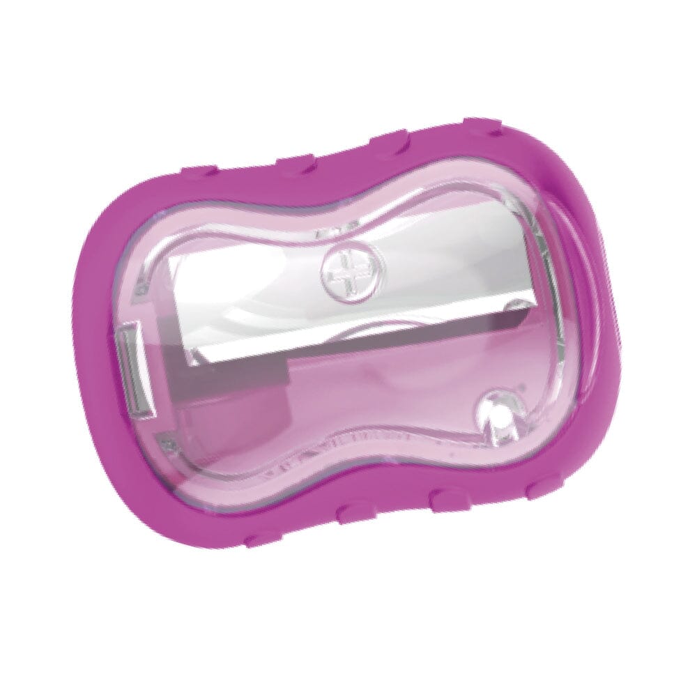 Sacapuntas de plástico simple con diseño Soft Grip de Rhein. Comodidad y precisión en cada afilado. Ideal para lápices estándar. ¡Una herramienta confiable para tu escritorio!