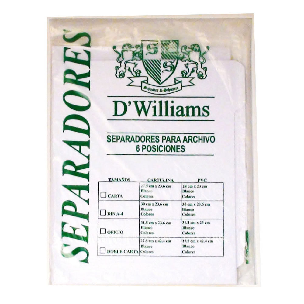 Descripción técnica | Separador de 6 posiciones con formato oficio, color blanco. |