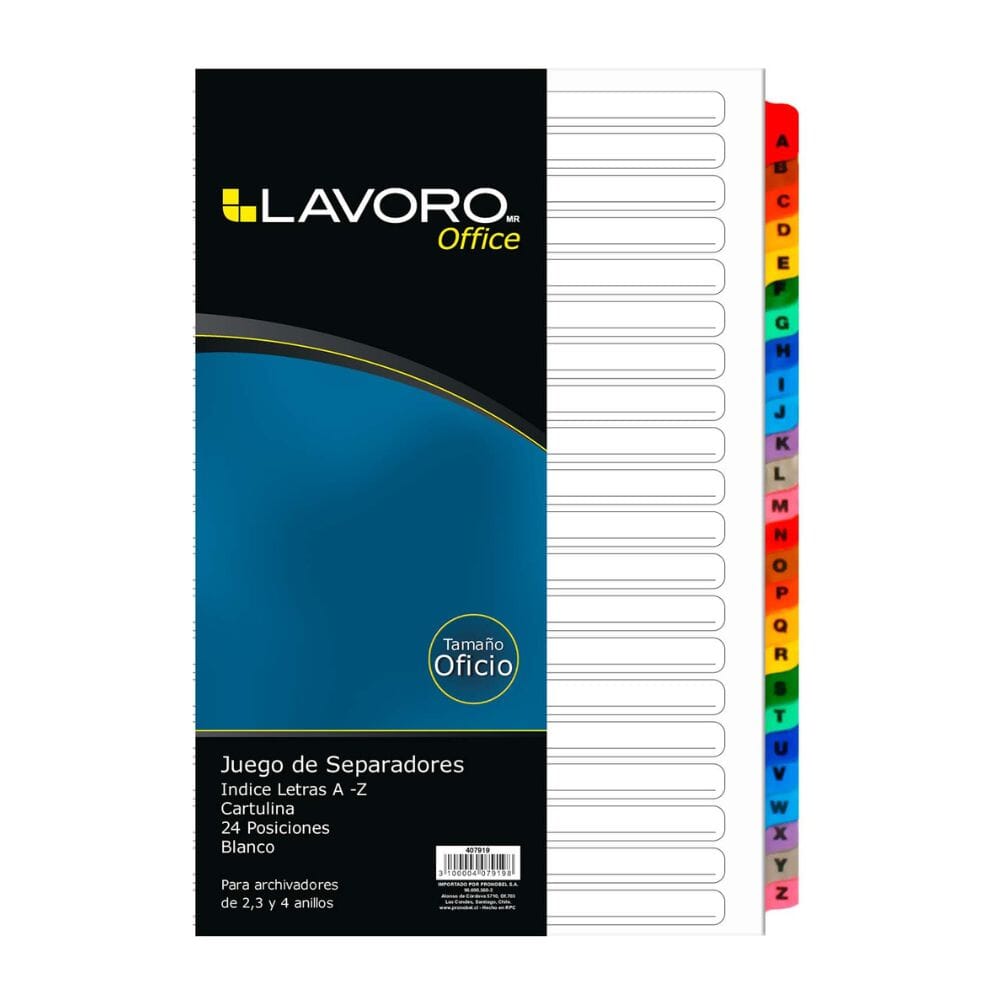Organiza tus documentos con estilo y eficiencia con el Separador Oficio Lavoro con Índice A-Z. Diseñado para profesionales, oficinas y estudiantes que valoran el orden.