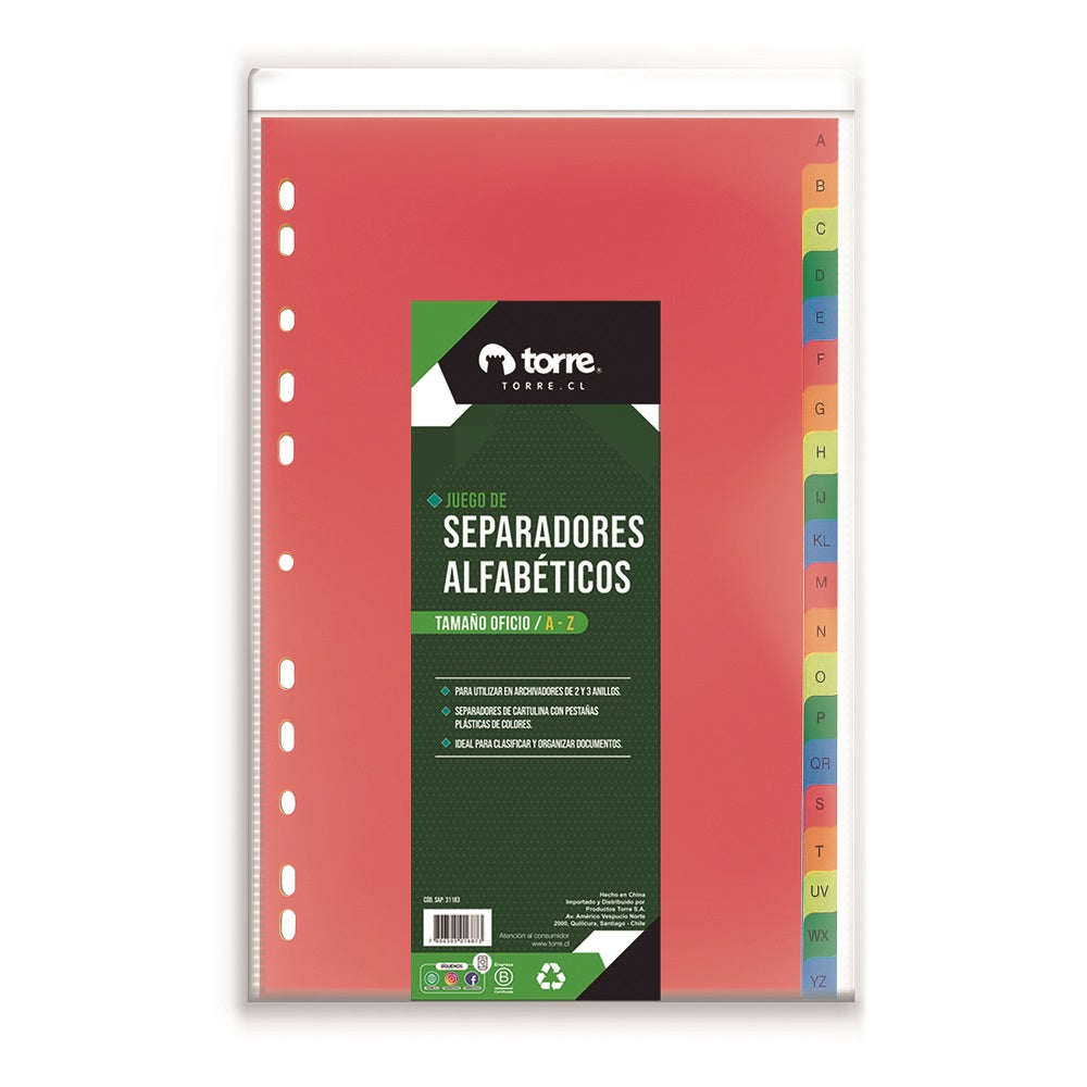 El separador tamaño oficio de la marca torre es la mejor manera de organizar tus documentos, ya que va de la A a la Z permitiendo separar la información por orden alfabético. Es un complemento ideal para tus carperas y archivadores.