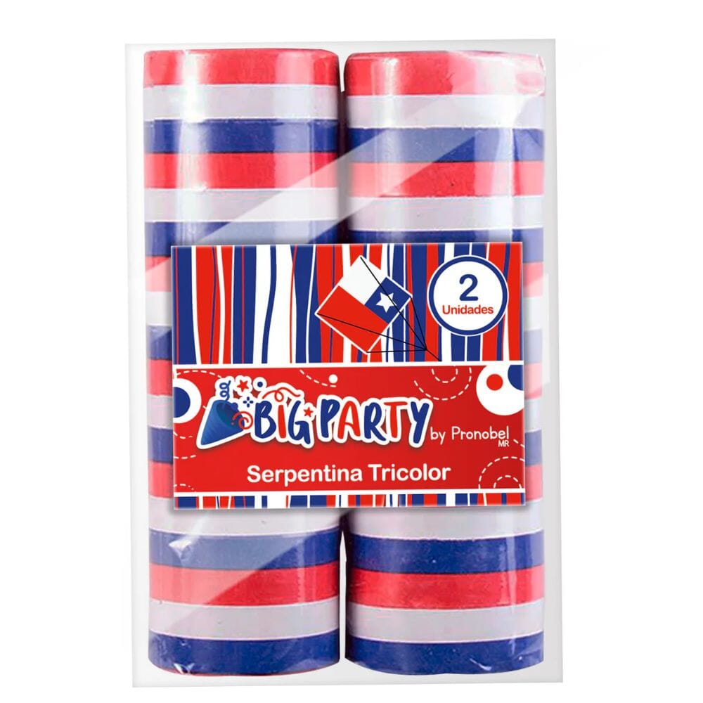 Añade un toque de diversión y color a tus celebraciones con la Serpentina Tricolor de Big Party. Con 4 metros de longitud por unidad.