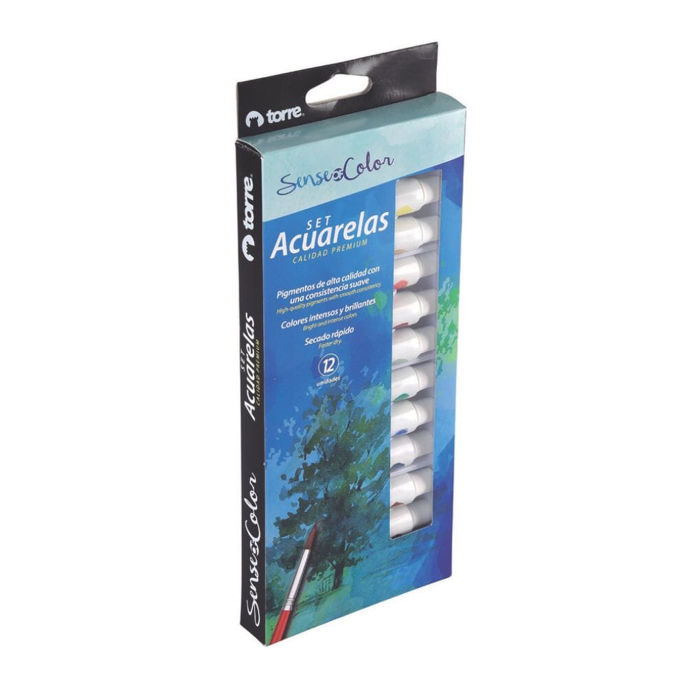 El set de acuarelas en tubos Torre incluye 12 vibrantes colores con excelente pigmentación y acabado profesional. Su formato en tubo permite una dosificación precisa, ideal para mezclar tonos y lograr efectos delicados o intensos según tu estilo.