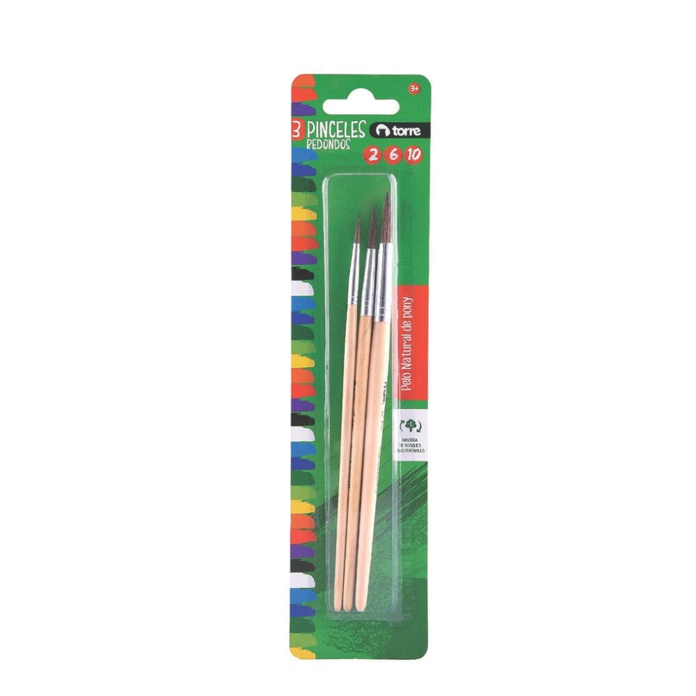 El set de pinceles redondos Torre incluye los números 2, 6 y 10, brindándote versatilidad para trabajar desde los detalles más finos hasta rellenos más amplios. Con mangos de madera cómodos y cerdas sintéticas resistentes, es el kit perfecto para artistas, estudiantes y amantes de la pintura.