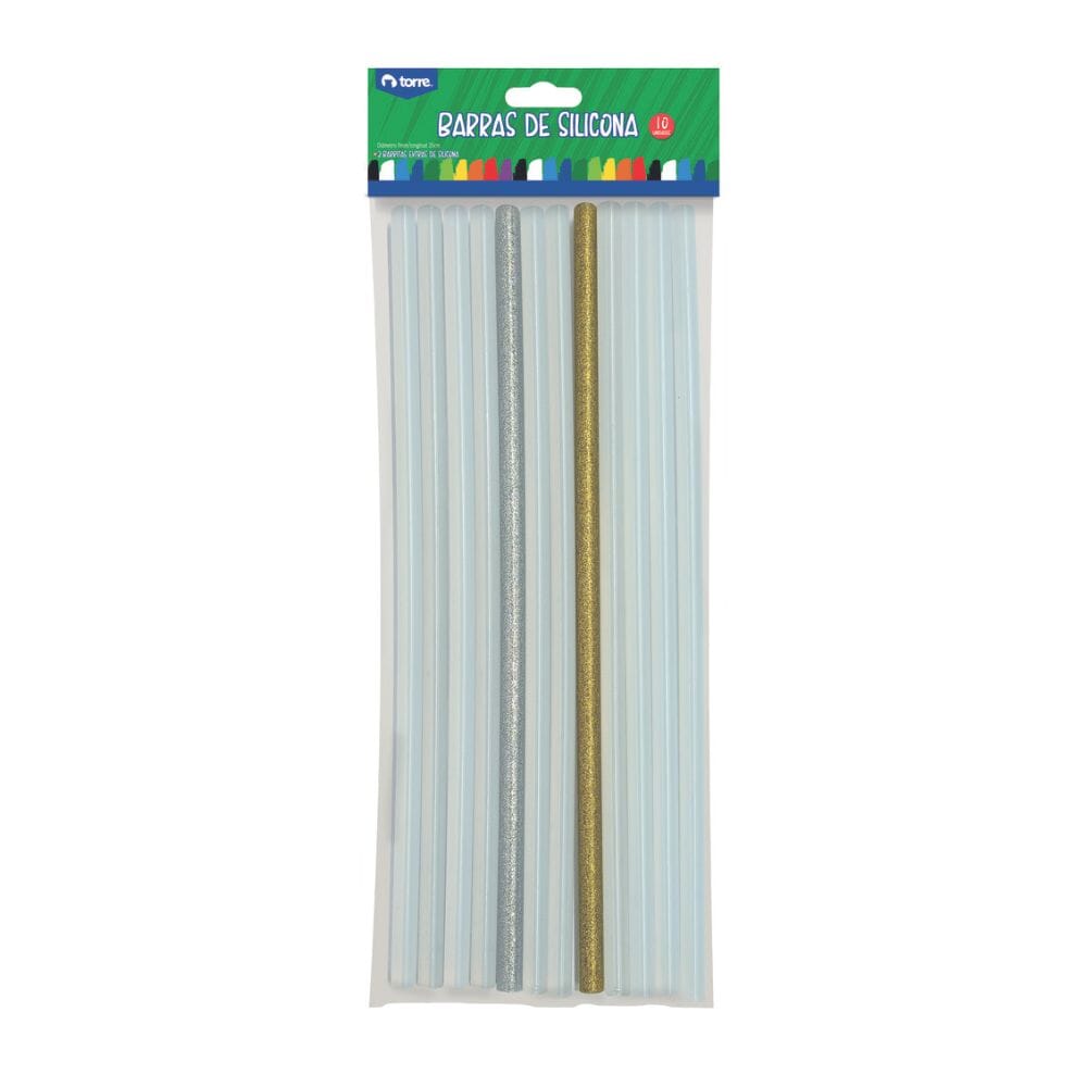 Con el pack de barras de silicona Torre, obtienes 10 unidades estándar + 2 con efecto glitter, ideales para proyectos escolares, manualidades, decoración y reparaciones.