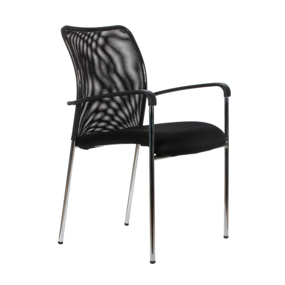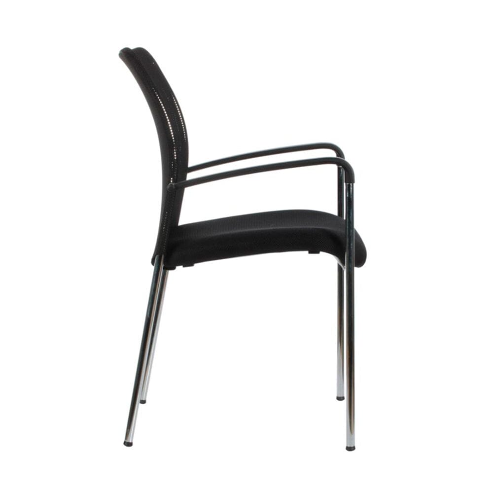 Asiento tapizado color negro.Respaldo malla.Apoyabrazos de alta resistenciaEstructura cromada