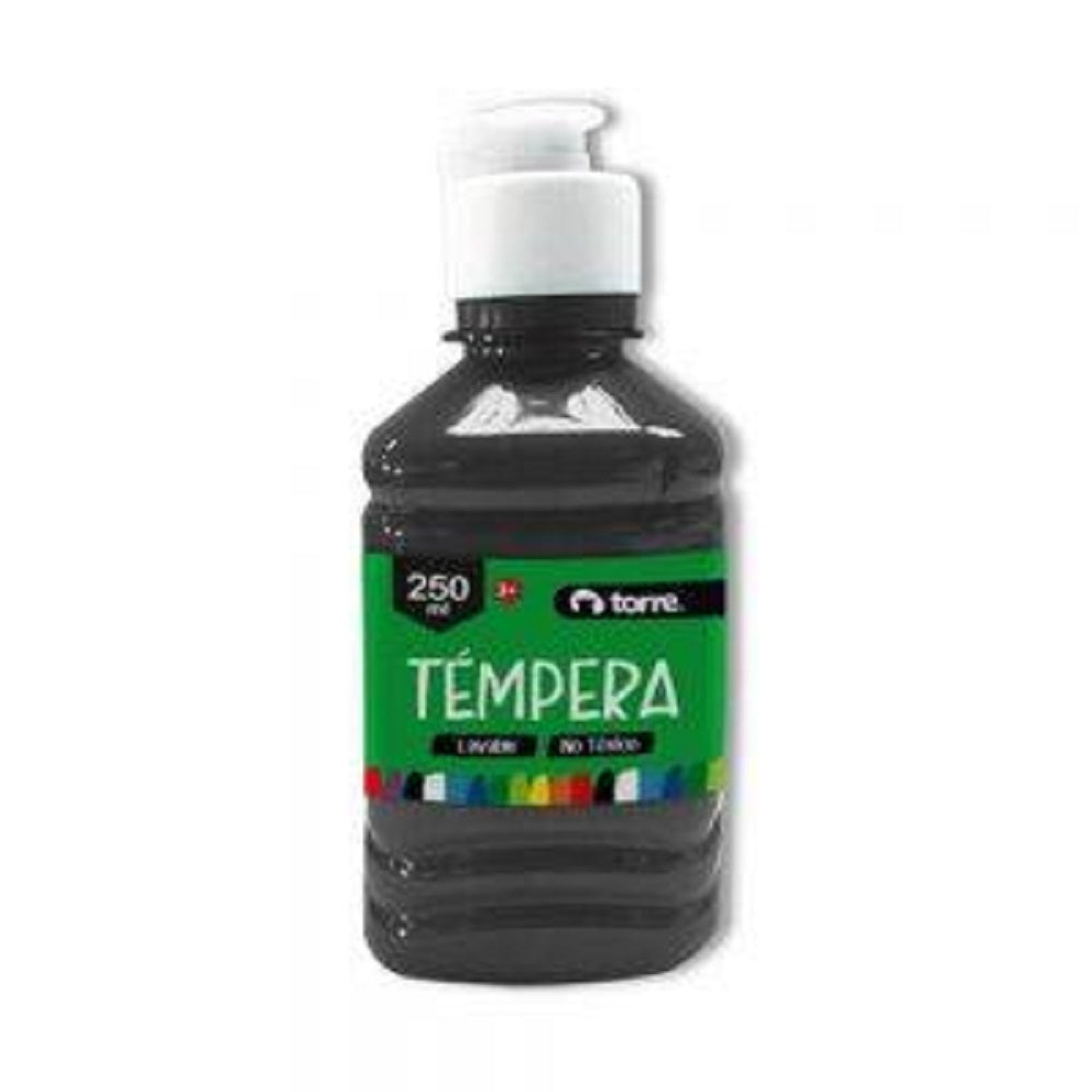 La tempera de color negro de la marca torre en su formato de 250 ml cuenta con un alto poder de cobertura, ideal para pintar en diversos papeles, cartón y otras superficies.