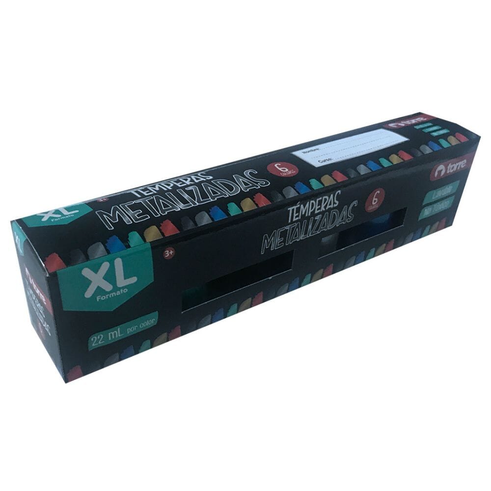 Embárcate en un viaje de brillo y encanto con nuestra Tempera Metálica de 6 colores.