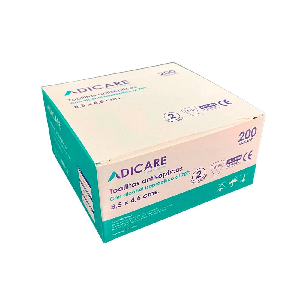 Toallitas Antisépticas, vienen 2 un dentro de un sachet sellado que mantiene la humedad, impregnadas con Alcohol Isopropílico al 70%, desinfecta todo tipo de superficies y dispositivos médicos. Eficaz antiséptico de la piel, usado antes de punciones y desinfección de accesos en catéteres venosos.